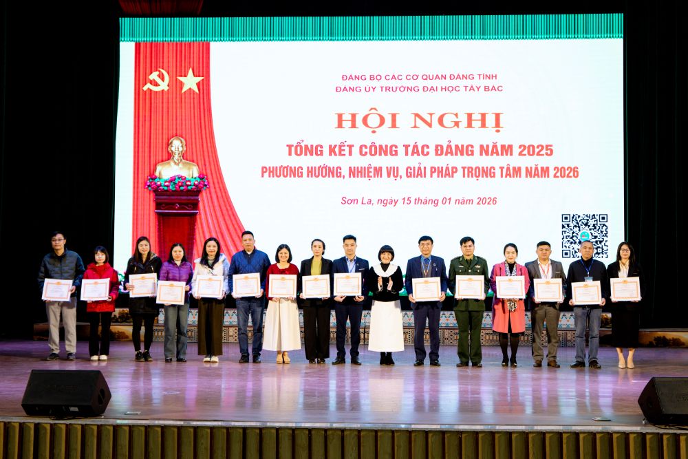 Căn cứ vào Hướng dẫn của cấp ủy cấp trên về thực hiện tổng kết công tác Đảng năm 2025 và thực hiện Kế hoạch số 10-KH/ĐU ngày 10/12/2025 của Đảng ủy, vào hồi 14h00 ngày 15/01/2026, tại Hội trường lớn, Đảng bộ Trường Đại học Tây Bắc đã long trọng tổ chức Hội nghị tổng kết công tác Đảng năm 2025; phương hướng, nhiệm vụ, giải pháp trọng tâm năm 2026. Hội nghị nhằm đánh giá toàn diện kết quả lãnh đạo, chỉ đạo của Đảng bộ trong năm 2025; Chỉ rõ những tồn tại, hạn chế, nguyên nhân và bài học kinh nghiệm; xác định mục tiêu, nhiệm vụ, giải pháp trọng tâm năm 2026; đồng thời biểu dương, khen thưởng các tập thể, cá nhân hoàn thành xuất sắc nhiệm vụ năm 2025.